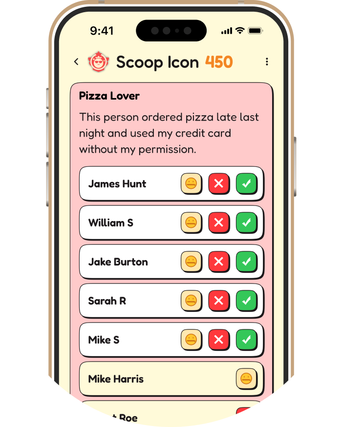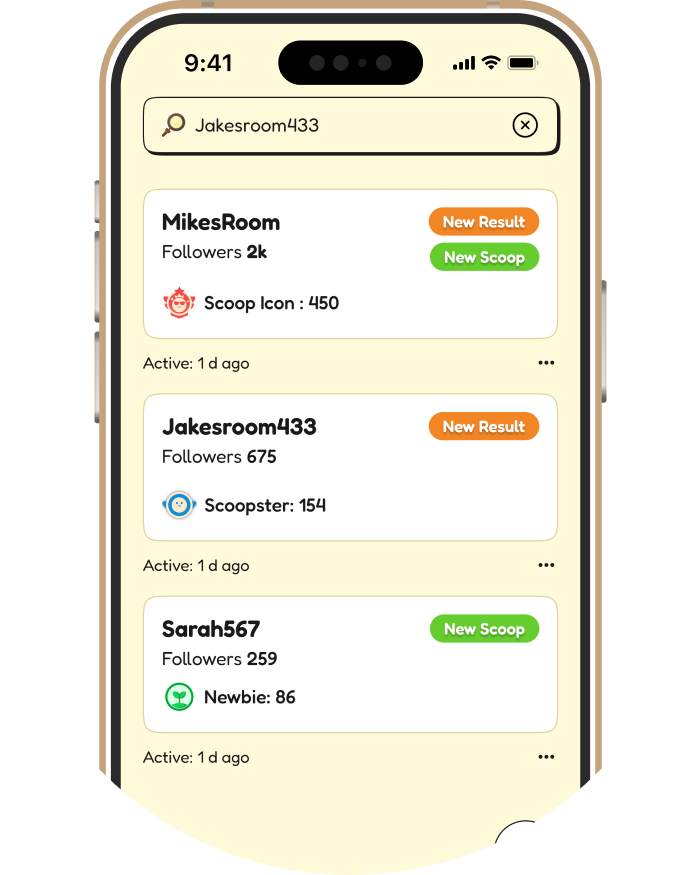 Share your Scoop ID with friends so they can join your room and take their shot at guessing your scoops.