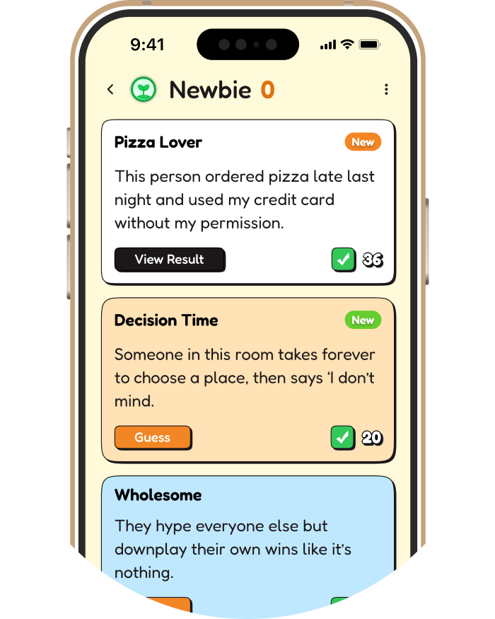 Light-hearted guessing, good vibes, and nothing that ruins the experience.
